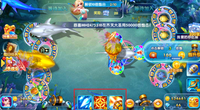 本站为大家大家整理出来了一些不错的捕鱼手游,为玩家带来经典的街机捕鱼手游玩法,超华丽的场景和特效等你来体验哦,喜欢就来本站下载吧!好玩的捕鱼手游怎么赚钱1、使用相对应的炮弹攻击相对应的鱼或者价值少一点的鱼2、河豚、鲨鱼、乌龟这些单价超过四十元的能不打就不打,因为这些鱼血量太厚了,有这个时间的话其他小鱼都打死一堆了。3、等待各种鱼汇集在一起的时候再开始攻击,这样命中率会更高,而且也比较容易击杀那些鱼。4