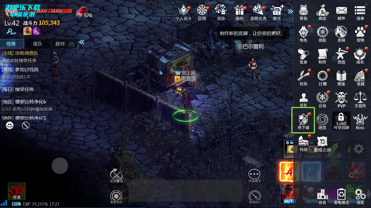 ① 进入路径:右上角选单→地下城;