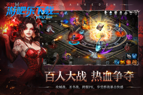百人阵营战:亚当神殿争夺圣书,解锁战神之力;攻城战、跨服 PK 引爆团战激情。