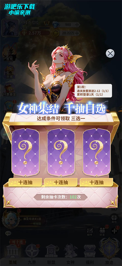 1、万抽福利,十连必出金!终身福利免费送,神魔的契约礼物!