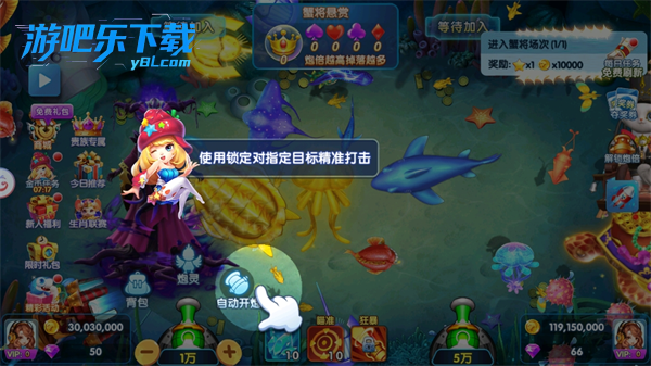 3、进入游戏后你只需轻点屏幕或者开启自动模式,轻松发射炮弹,就可以开始捕鱼了。