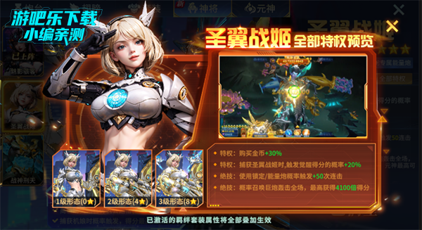 2、特权:捕获圣翼战姬时,触发觉醒得分的概率+20%