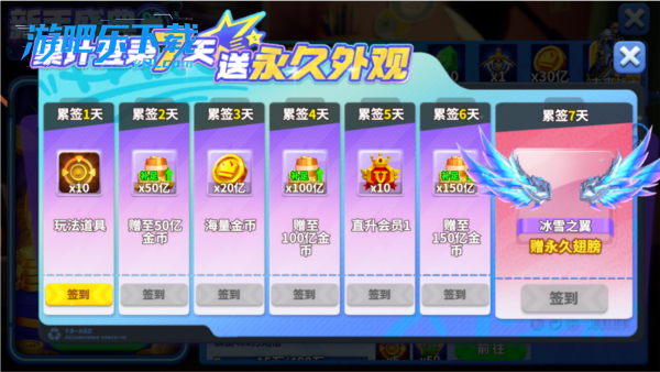 7 日签到:送点券、钻石、金币、道具。