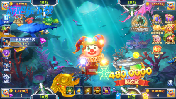 2、击杀大鱼能带来丰厚的金币和钻石奖励,但同样需要消耗更多弹药和金钻,如大白鲨、大金鲨和深海怪物等。注意,大鱼还未完全进入射程时,盲目攻击不仅难以命中,还可能白白浪费金币和弹药。
