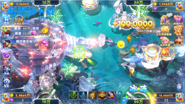 5、在捕捉白鲨或金鲨等高价值目标时,单靠高倍炮未必能成功,关键时刻使用技能键会更有效。比如使用“瞄准技能”可以提升命中率,开启“冰冻技能”则能定住全场,帮助你精准锁定高分鱼。