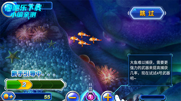 4、鱼越大越难捕捉,这个时候就需要调整炮台的等级