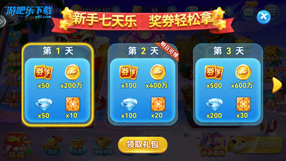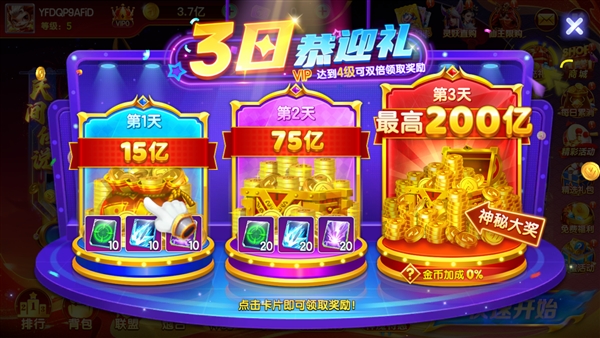 1、注册完进入游戏后就可以领取到上线豪礼;