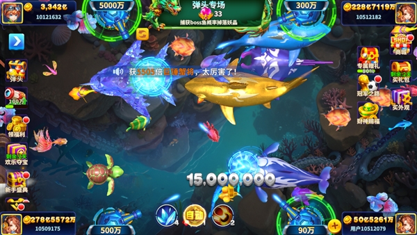 炮台是游戏里最重要的道具,相对来说捕鱼时使用的倍率也是相当重要的,那么在进行游戏的时候,我们要学会根据不同的鱼类、BOSS来选择不同的炮倍。比如在刚进入渔场的时候,BOSS如果还没出现,我们可以切换成低倍炮,捕抓小鱼热热身,节省金币,等待BOSS出现之后,再切换成高倍,实现捕鱼奖励最大化,从而在游戏中获得更多的金币。