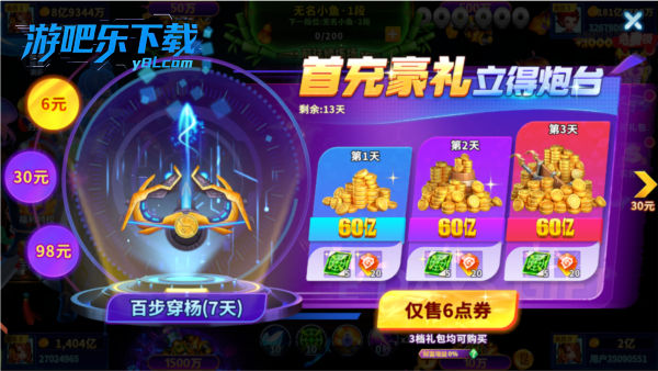 BY888:金币 + 千倍炮台体验卡 + 狂暴道具