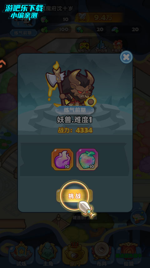 4、进入游戏,你需要驱逐妖兽,点击挑战;