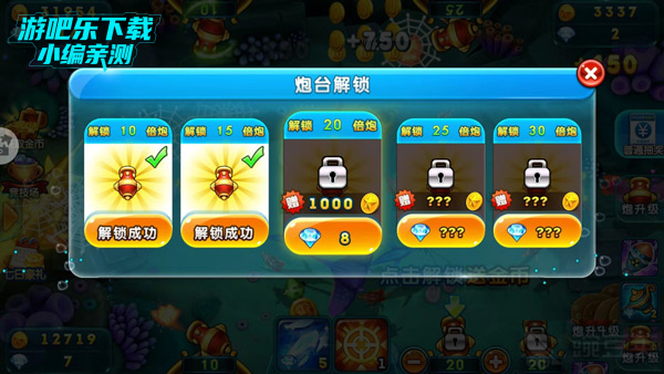 升级炮台能提高捕鱼的杀伤力,攻打大鱼和远处的鱼时必须要使用大炮,如果炮弹不足,是无法捕捉成功的,因此还需要升级炮弹的倍数,倍数越高,冲击力越大。升级炮台需要消耗一定的钻石,钻石如果不够可以在游戏中升级赢得钻石或者去商城购买。