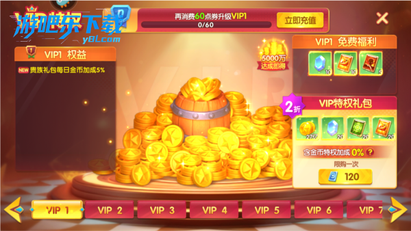 VIP 系统:解锁高倍房、专属 BOSS、每日福利,VIP5 + 可参与王者争霸赛。