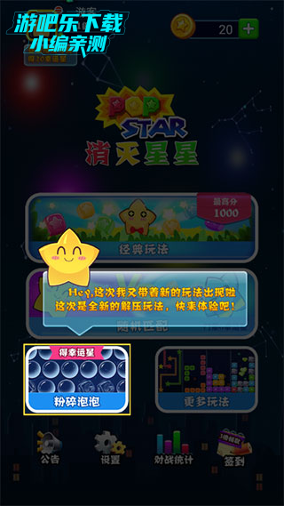 6、消灭星星官方正版还提供了粉碎泡泡等多种游戏玩法可供选择;