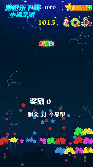 2、尽量消光所有的星星,最后可以拿到近2000分加成分,千万别错过。