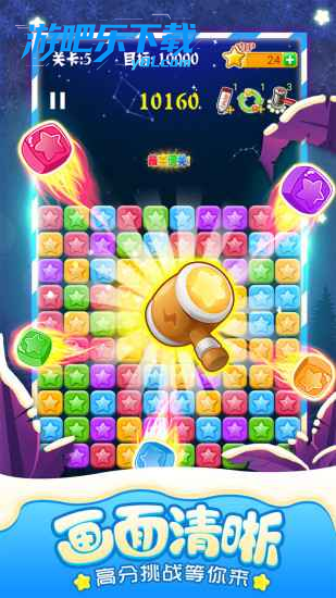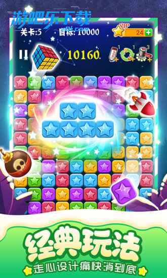 消灭星星全新版是一款非常有意思的消除类游戏,玩家只需要使用经典的三消玩法就能轻松消除各种方块,在这里完成目标就能进入下一关,非常好玩治愈,轻松体验各种游戏欢乐!