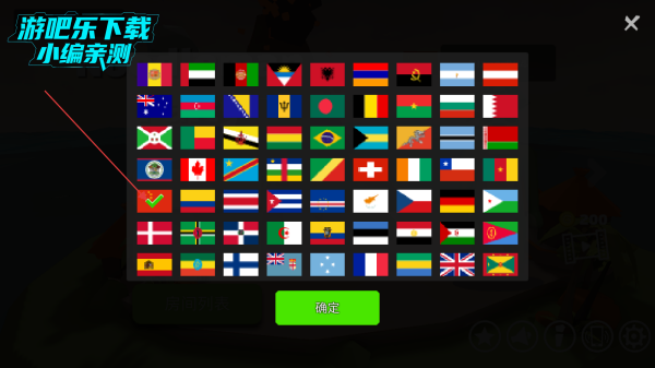 1、进入游戏,在国旗选择界面挑选国旗后点击【确定】。