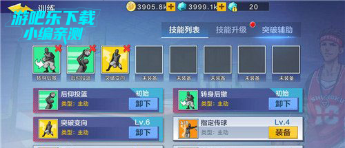 技能组合随意搭配,盖帽、扣篮、侧身跳投等,单个球员可装备多达10个技能,花式炫技,自由连招。