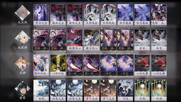 妖琴师 觉醒·神乐歌 (2) 觉醒·镇魂歌 (2) 疯魔琴心 (1) 余音 (2) 魔音扰心 (1)