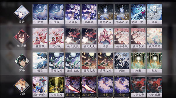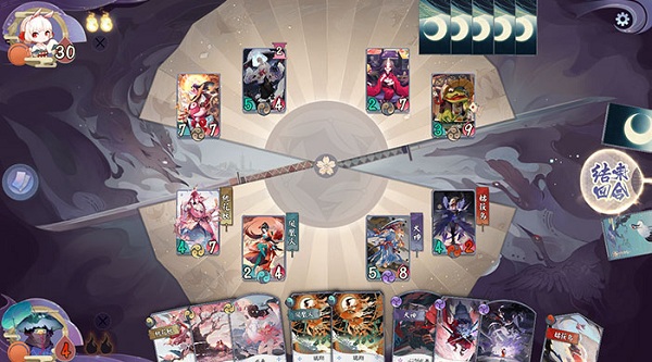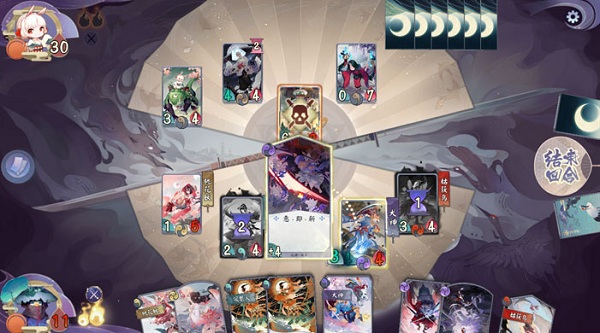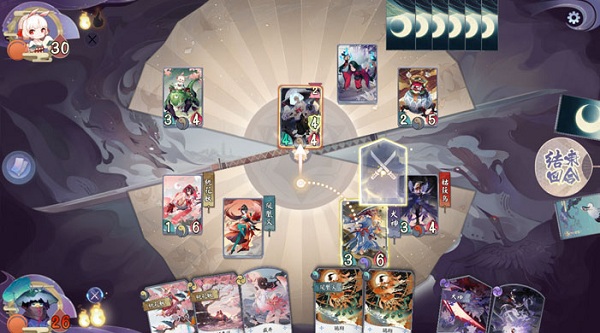 完整的阵容包括四位式神,每位式神携带8张专属卡牌,每回合从牌库中抽取一张卡牌置入手牌中。