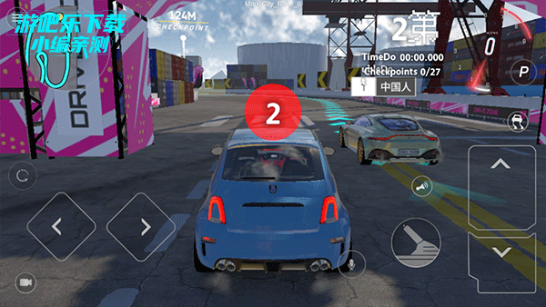 3、游戏的操作非常简单,与经典的赛车游戏类似,左边控制方向,右边控制油门、刹车、倒车等等;