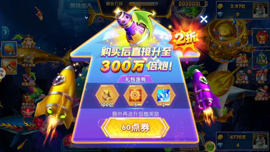 2.丰厚成长礼包等你来领取,首充即可获得专属炮台!