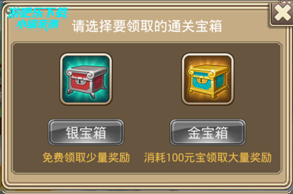 2、通关宝箱:每当玩家经过50点的时候,就可以领取通关宝箱,金宝箱每天只可以领取一次,银宝箱没有限制。