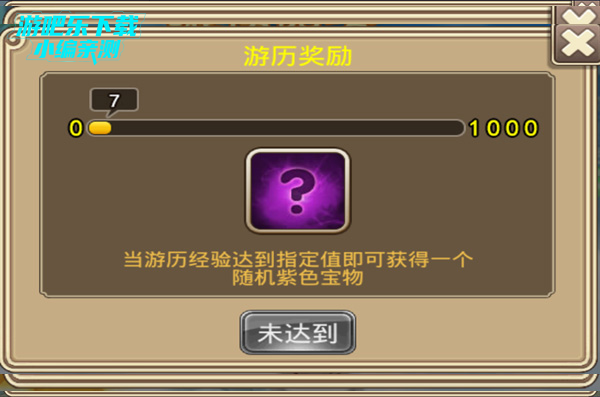 3、玩家累计点数每当达到1000点的时候,即可以领取游历奖励,可以随机获得一个紫色宝物。