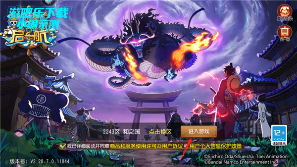 1、进入游戏首页,选择好自己的服区,点击进入游戏;