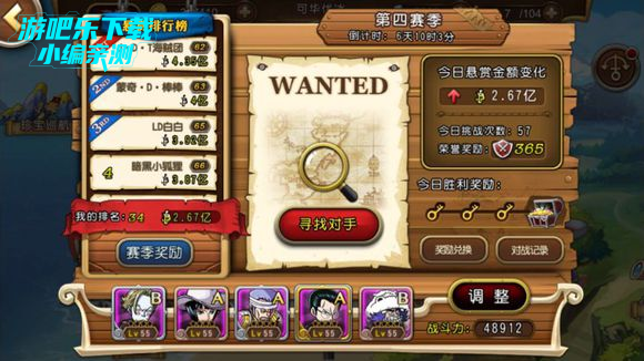 首先,小伙伴们需要了解通缉榜的匹配原理。《航海王 启航》“悬赏通缉榜”的匹配原理来自赏金,系统将以玩家A为中心,自动把高于A赏金1E以内和低于A赏金1E以内的所有在线玩家都丢到一个类似摇奖池里面,然后随机选中一个和A玩家进行比赛。所以,这个过程是不看等级,不看战力,只看赏金数额和是否在线!