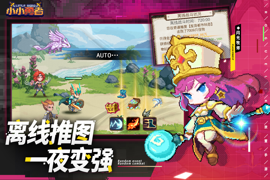 - 小小勇者是一款非常有趣的游戏,它结合了经营、角色扮演和挂机玩法,让玩家可以在轻松的氛围中体验冒险的乐趣。游戏中的随机事件也为游戏增添了不少乐趣和惊喜,让玩家每次游戏都有不同的体验。总的来说,这是一款非常值得一玩的游戏。