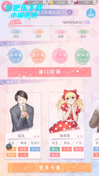 专家升级:专家升级即使没有聘用也可以提升公司实力,但是不要全部都提升到满级,留几个不要升级,因为每日任务中每天会让你升级一名专家。