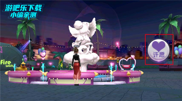 玩家们进入温泉广场后,走到正中央便可以看到欧式建筑风格的许愿池,走近许愿池后点击一旁的“许愿”按钮即可触发该玩法。