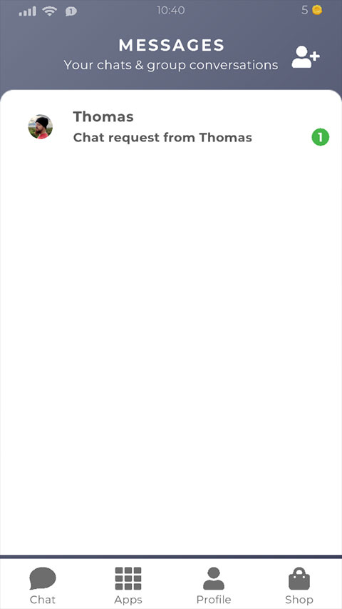 2、有一个叫作“Thomas”托马斯的男生加你好友,并给你发信息,点击对话框进入看看。