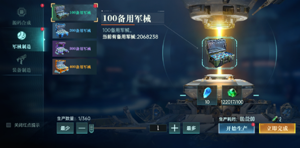 游戏中不论是主线任务还是各种玩法都会产出一些基础材料,可以在生产中制造【招募源码】、【装备】以及对抗最重要的【备用军械】,备用军械在新手期buff结束之后消耗量非常大,需要跟得上我们部队的消耗速度,否则部队没有补给,就无法出征哦。