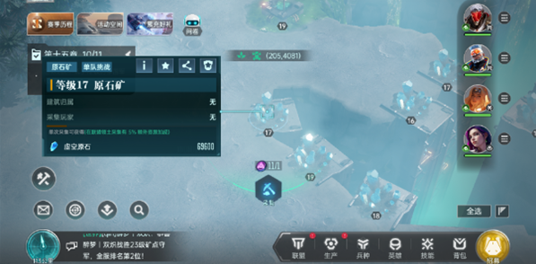 采集是游戏获取【虚空原石】与【暗质精华】的主要方式,采集之前需要战胜采集点守军,采集点等级越高采集的资源越多,相对的守军也会更强(占领该等级的守军之后,后续采集不需要战斗),在前期我们尽量挑战更高等级的采集点再消耗采集点进行采集哦!