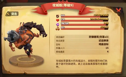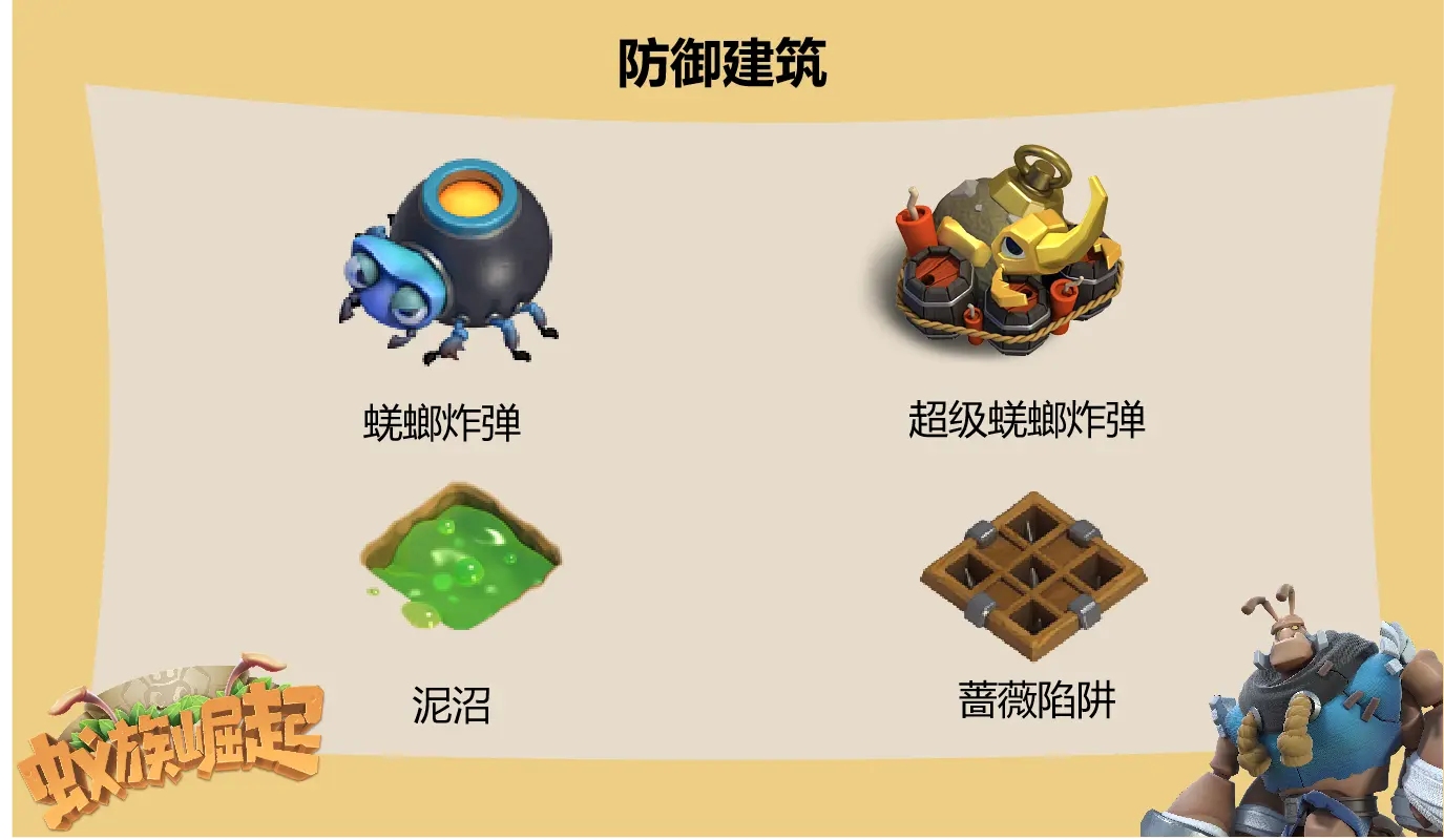 在适当的时候使用,兵蚁攻城蚁,配合部队进行使用,那可起到事半功倍的价值。攻城蚁进攻后,会优先去找防御建筑,那么有可能会遗漏一些小建筑在后方,那么可以适当丢1—2个小兵进行残局收割。