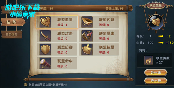 3、提升联盟技能等级