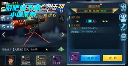火箭炮是《抢滩登陆3D》中可以瞬间扭转战局的战略性武器。而其中的烈火·MMP则是火箭炮中备受玩家推崇的一款。它不仅拥有S级武器中满战力达到28380的惊人数值,更能在升级配件套装属性时,可以额外附加伤害和暴击伤害这两大核心属性。往往一炮过去,烈火·MMP便可以秒杀全场,让战斗无比畅快。最关键的是,烈火·MMP只需要消耗少量的2500钻石便可以获得,如果有耐心的话便可以通过游戏内各种途径来积攒钻石获得,或者可以将零钱充值到游戏中,大量的充值返利、回馈等等活动,只需少量的零钱便足够获得这一一架令人震撼的火箭炮,绝对是零钱最有价值的体现。