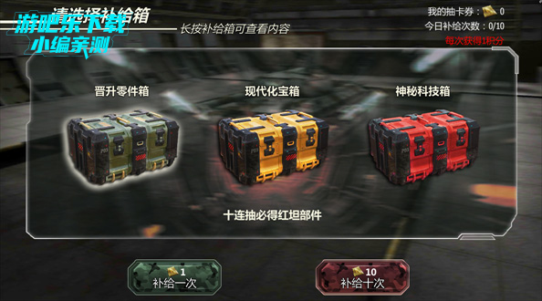 除了主界面底部菜单中的军械抽奖外,右上角的现代军械活动中也可以消耗资源抽取坦克。