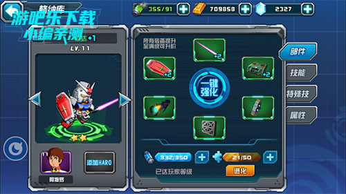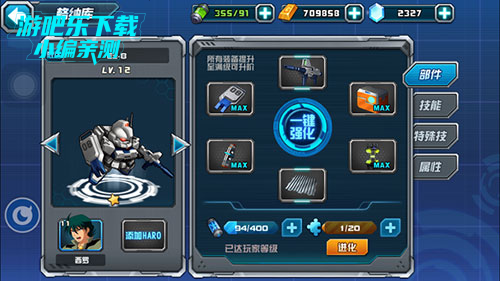 4、技能:超级光速军刀(初始技)、6连装榴弹发射器(机体升级至绿色后解锁)、能量提升(机体升级至蓝色后解锁)、能力提升(机体升级至紫色后解锁)。