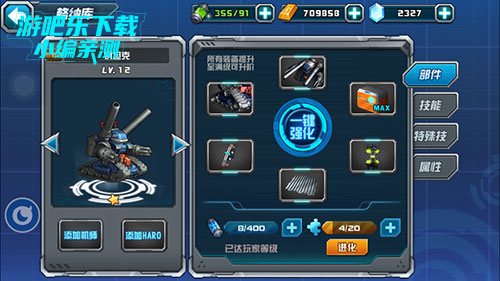 4、技能:全弹放射(初始技)、光速步枪(机体升级至绿色后解锁)、180mm加农炮(机体升级至蓝色后解锁)、能力提升(机体升级至紫色后解锁)。