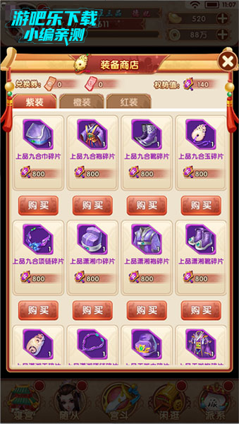 玩家通过各种奖励获得的权势值可以在装备商店中兑换各种品质装备的碎片