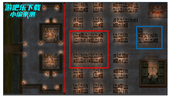 此关为秦用死劫关。我军只能在民居上行走,每第一次进一个民居都会在附近民居上触发强行的刺客,刺客到达红线就会触发一波伏兵,包括两个步兵两个枪兵两个弓兵。蓝框处超过三人会触发两个强行的刺客。如果同时触发4波或以上的伏兵秦用会触发中伏剧情,14回合若未主动进瓮城会自动触发中伏剧情。所以本关关键在于尽可能的在不触发新刺客的前提下清刺客。建议出战张紫嫣尚怀忠(有罗松的上罗松),有窦线娘的玩家窦线娘必出站,没羽箭攻击可以打到相邻的民居,很好用,张紫嫣加好强行。如果已经触发伏兵可在红框内民居清完伏兵再分兵上下清刺客。可以大部队在红线附近守株待兔,让跑得快的人去踩雷,把刺客都踩出来。清完刺客后进瓮城触发瓮城内敌军,程咬金到达城门附近时徐茂公出现。徐茂公对话秦琼后徐茂公才会触发撤退。秦用学特技条件:红线以左无敌军(井栏也要杀),秦用在瓮城内。只要挡住门口,清掉井栏即可。二周目全灭过关奖励秦用成长点,有皮肤再额外奖励两点。