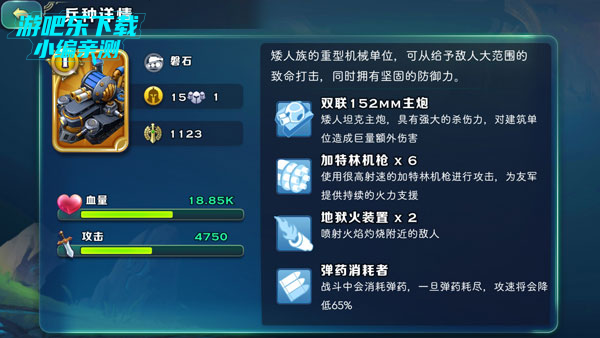 ps:坦克在满科技后地狱火和机枪不再消耗弹药,再加上希德的弹药技能,真正做到了独当一面。