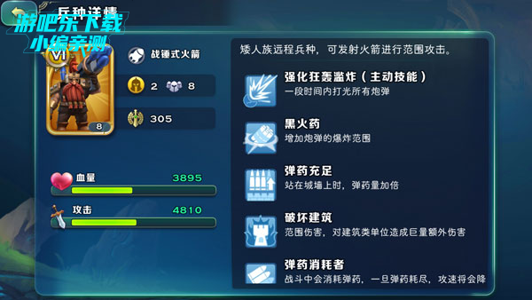 3)克制:骑兵;蝎子;机甲等人数少的兵种以及游戏中的各大boss。