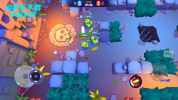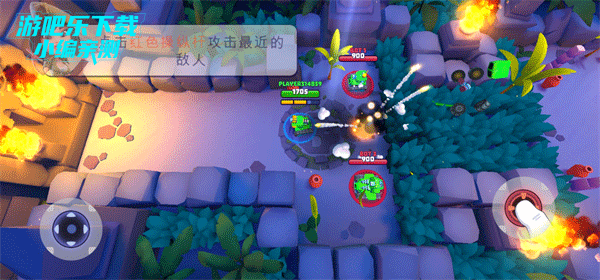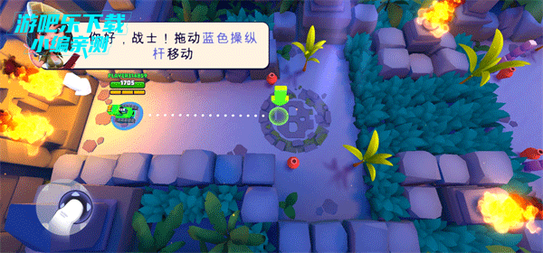 1、首先我们进入TanksALot游戏中,拖动蓝色操纵杆移动坦克;