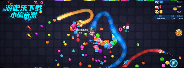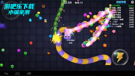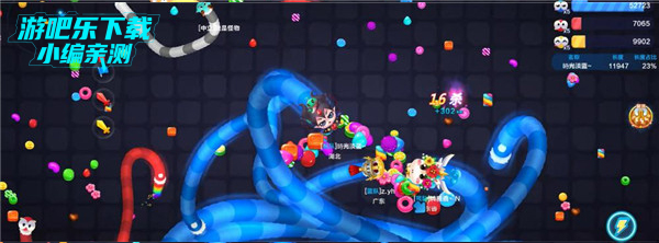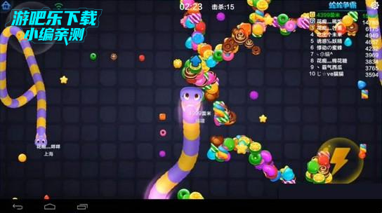 2. 包围压制战术:长度足够时,可将小蛇圈进自己的身体内部,等待其自主撞死,轻松收获糖果奖励;