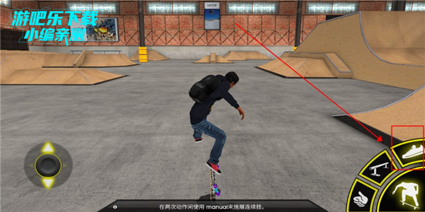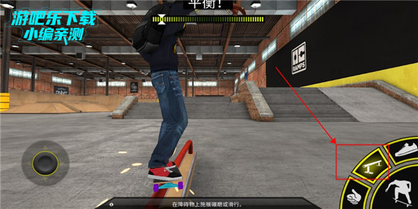 3、这个则是碾磨按键,主要栏杆等地形按住此键可以进行滑行,将此键和方向键组合使用,可以施展不同的平衡动作