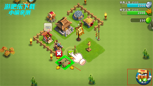 2、建设第一步:兵马未动,粮草先行,我们首先要有自己的农田和银矿!点击商店-资源-选择农田/银矿。