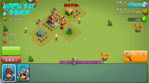 5、开始讨伐其它部落,点击空白处出兵,红色区域不可以放兵。